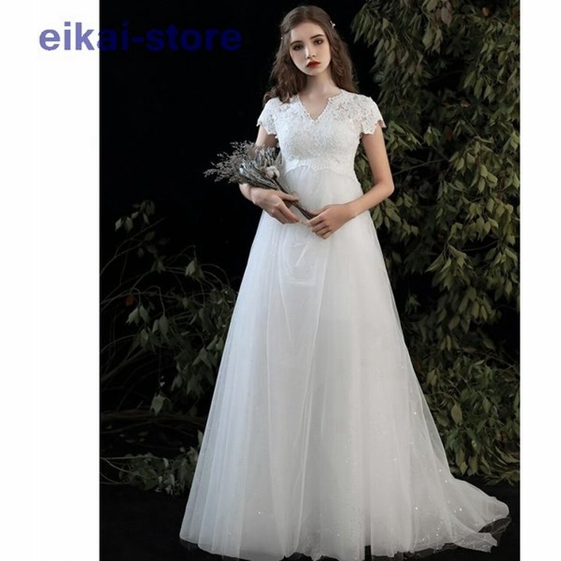 ウエディングドレス 白 エンパイア 結婚式 二次会 花嫁 マタニティ ドレス ロングドレス 袖あり 半袖 レースアップ 大きいサイズ 3l 小さいサイズ 通販 Lineポイント最大get Lineショッピング