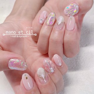 女子力高め上品ネイル プチ ビジュー