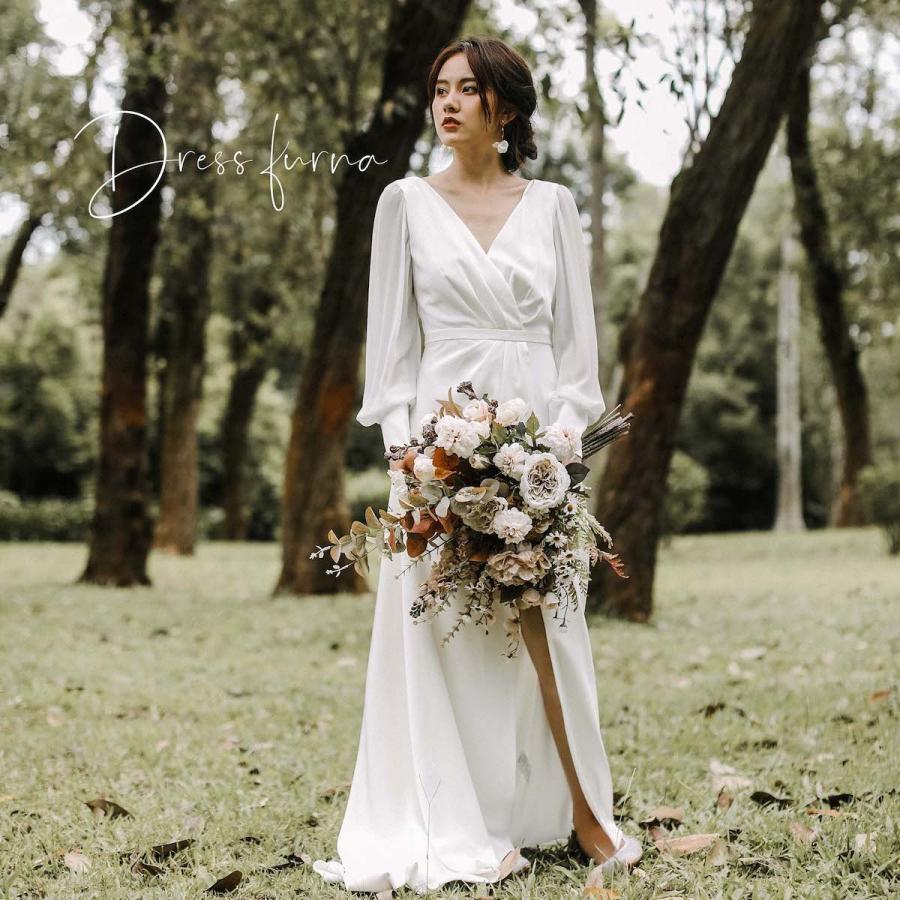 ウエディングドレス 二次会 袖あり 長袖 購入 白 花嫁 エンパイア シンプル 格安 安い 披露宴 前撮り Fw1929 パーティードレス専門店ファーナ 通販 Yahoo ショッピング